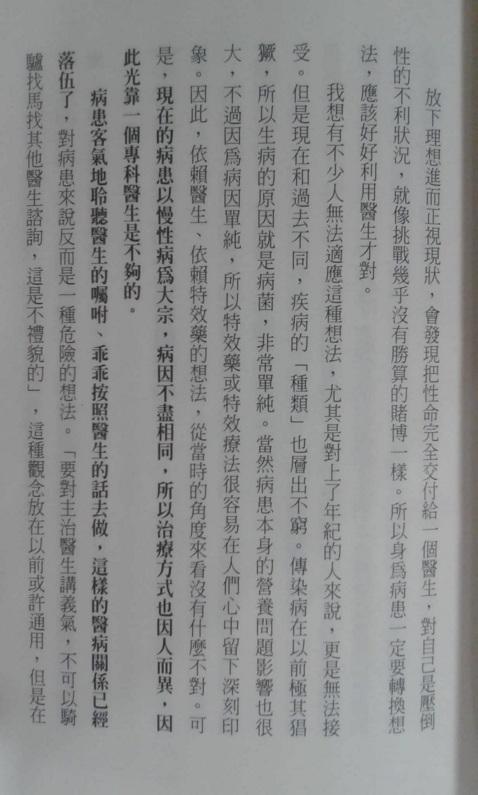 這個時代,每位病患看診的時間很短促,(候診的時間很長),一定要好好把握和醫師的溝通機會。